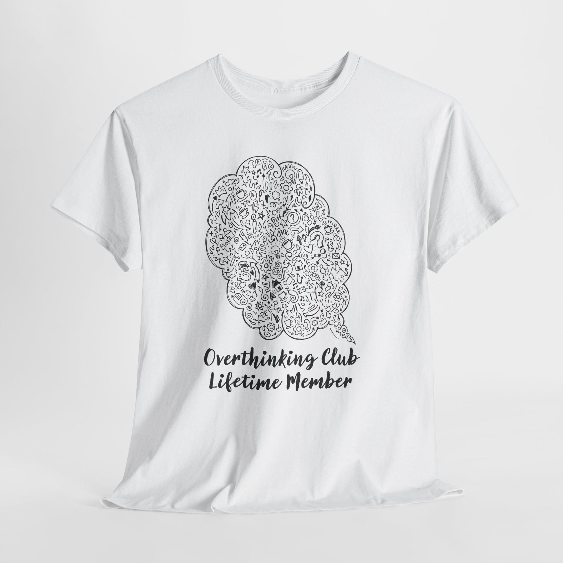 Bo zamiast wielkiego hasła masz obraz, który mówi wszystko sam. Ta chmura z doodlami wygląda jak mapa myśli - lekka, zabawna i bardzo „prawdziwa”. To koszulka, która nie krzyczy, tylko mruga okiem.