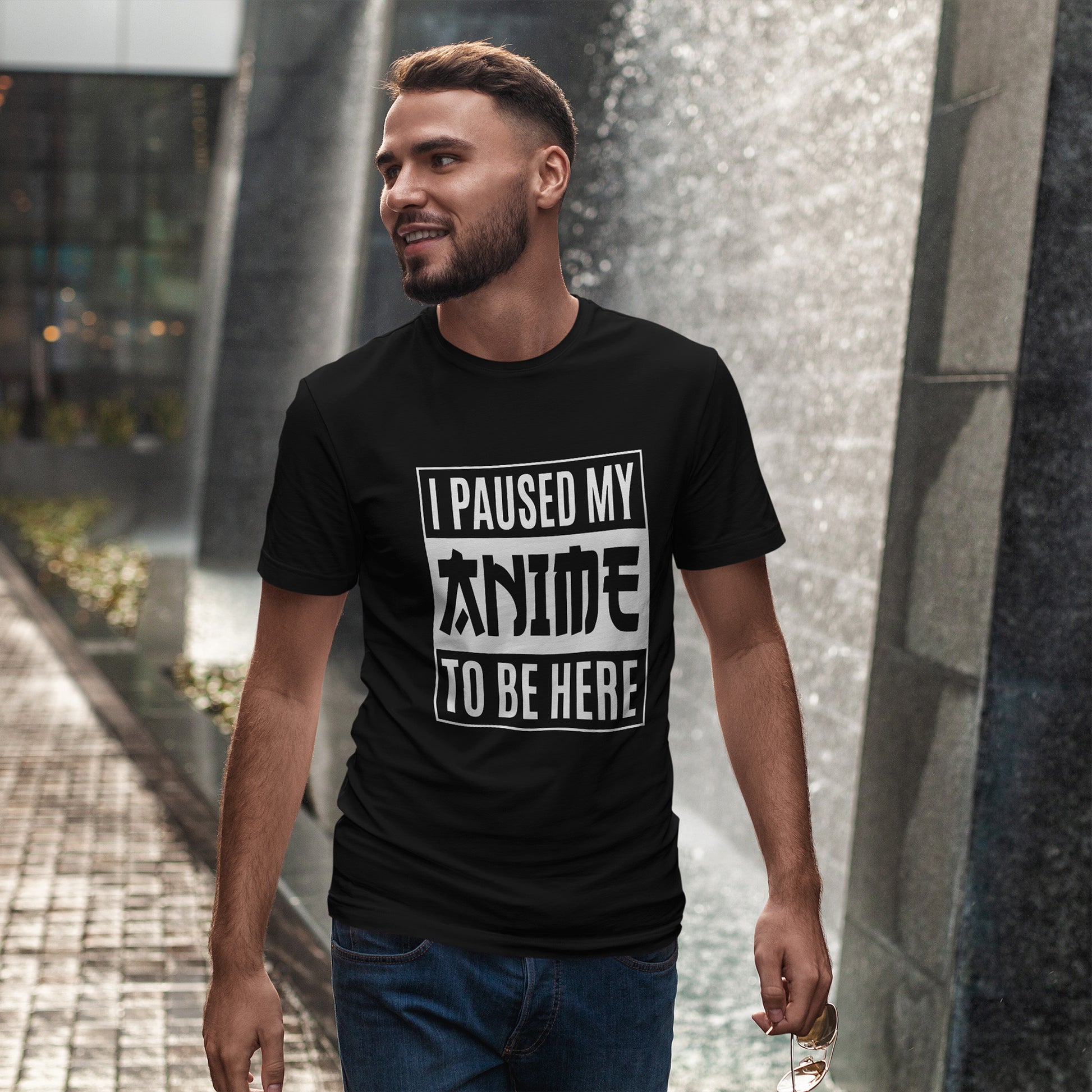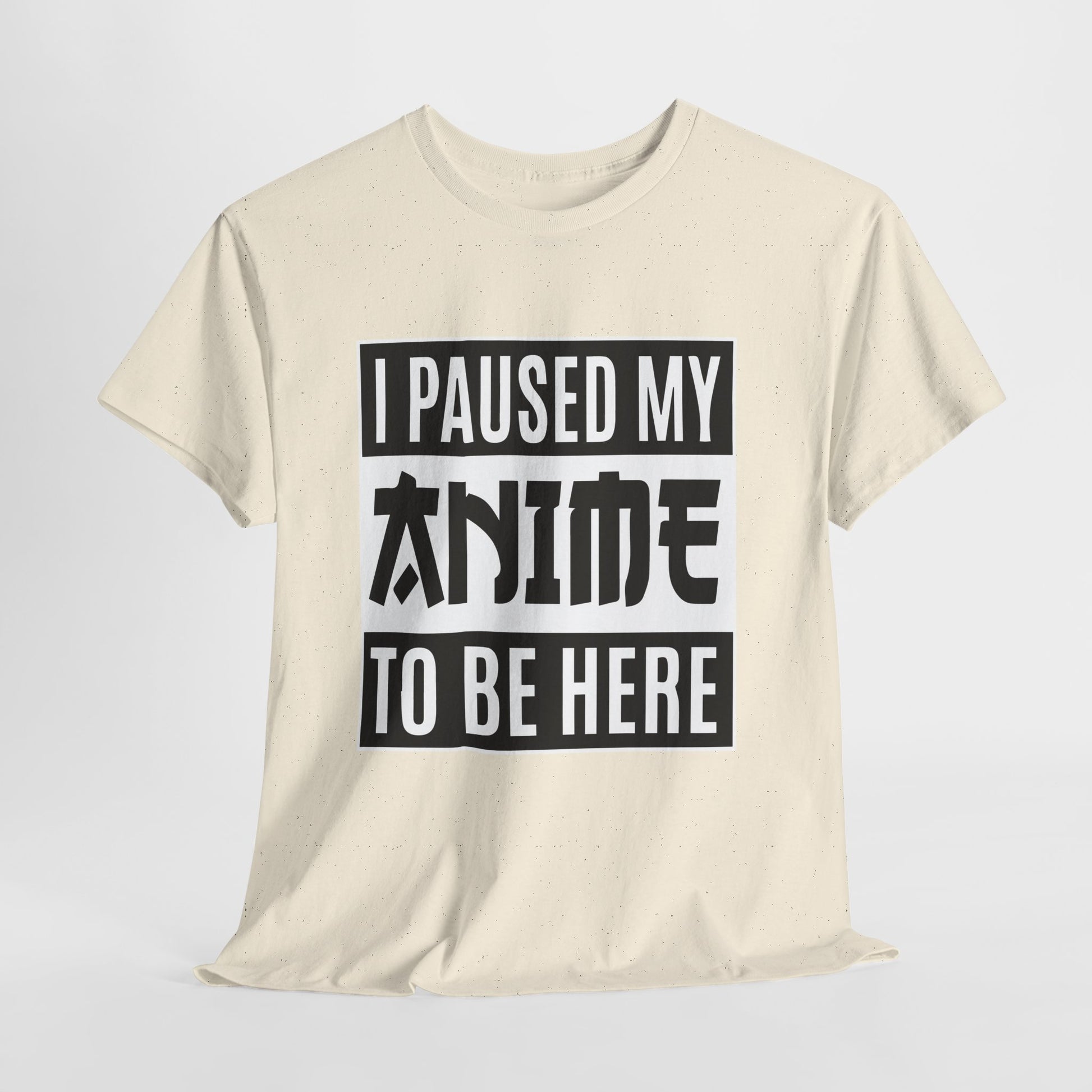 Na nadruku widnieje tekst I PAUSED MY ANIME TO BE HERE, z mocnym, centralnym słowem ANIME stylizowanym na znakowy, japoński klimat. Smaczek? Każdy fan wie, że przerwanie w najlepszym momencie boli bardziej niż zimna herbata. Ten print działa jak mała pieczątka „robię to dla was” - i jednocześnie jak mem na koszulce. Świetnie pasuje do jeansów, dresu i bluzy, bo jest kontrastowy i maksymalnie czytelny. Idealny na sytuacje, gdy Twoja obecność to poświęcenie.